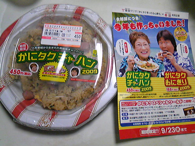 星蓮船とポケモンがほぼ同時に一般発売とか金の使いどころが大変です。 ま、僕はそんなにせっかちに使う気は無いのであんまり関係ないですが。 ダイパプHGSSスレの流れが速くて困るくらいです。 そんなわけで今日は食欲の話題から。 東海ラジオの巷で大騒ぎしてるかにタクチャーハンを買ってきました~。 学校の近くのサークルKにて。 高校生で溢れかえる夕方にカメラを向けるのはちょっと恥ずかしかったです。 でもブログのためだと一念発起してきました。 ……にしても映りが悪い。 そんでもって帰宅。レジの近くのチラシも一緒に持ってきました。 450円なり。 若干高めですがこれもかにタクブランドだと割り切ればなんでもない。 実際は巨峰カルピスソーダ(147円だっけ)と一緒に買ってきたので600円でしたがなんでもないぜ。 開封&試食。 写真からは分かりませんが真ん中に野沢菜と紅生姜が載ってます。あとはランチョンミートとか卵とかが入ってます。 帰ってから改めて温めたので醤油の香りがたまらないです。 ……美味い。かなり美味いです。 宣伝とかそういう類のものでなくて本当にお勧めできる一品です。 温めて正解でした。炊き込みご飯に似た醤油の旨みがスプーンを進めます。 あまり見た目には存在感の無いちりめんじゃこも活躍してます。 そしてなんと言っても野沢菜と紅生姜がホントにチャーハンにぴったりなんです。 感覚的には薬味の一種でしょうか。アクセントというよりはほぼ具です。 含有比率もいいですね。飽きません。 「沖縄の味」がテーマになってますが、この前修学旅行で行ってきた沖縄では郷土的な料理は食べられなかったので今更ながら堪能できて嬉しかったです。 豚が有名でもありますが、現地ではランチョンミートがよく食べられています。 沖縄に駐在している米軍の食料として開発されたのが始まりで、それが民間に浸透した……とか聞いた覚えが。 本土で食べるベーコンとかソーセージとかそういったレベルで食べるのだそうです。例えばランチョンミート卵とか。 おにぎりも買わなきゃ。 |